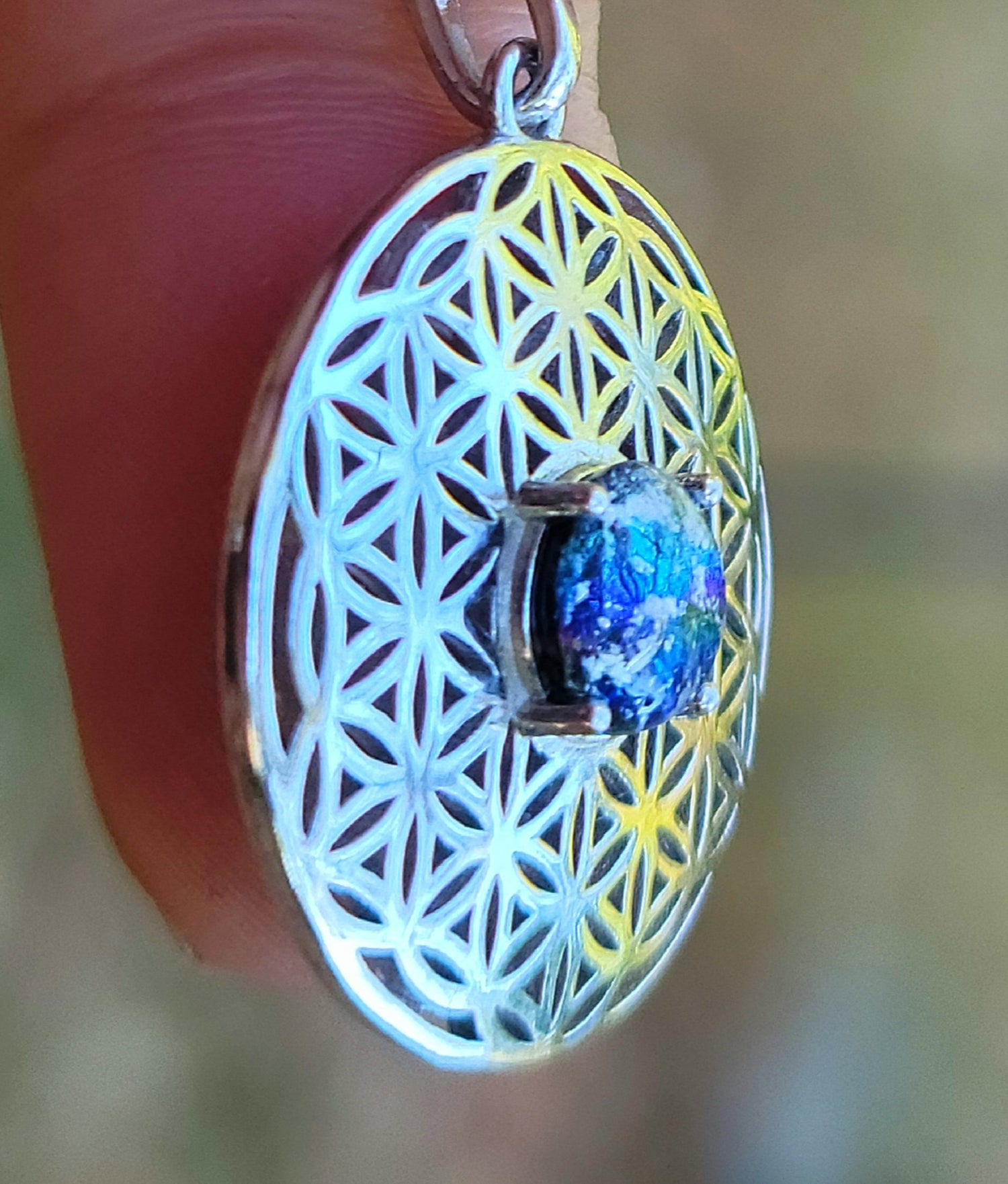 The Boho Flower Cremation Pendant is a piece of handcrafted sterling silver memorial jewelry. Decorated with a vibrant blue hue at the heart of the pendant, it is a symbol of the fleeting beauty of life.
