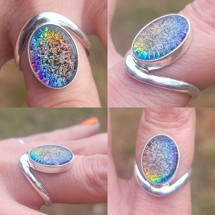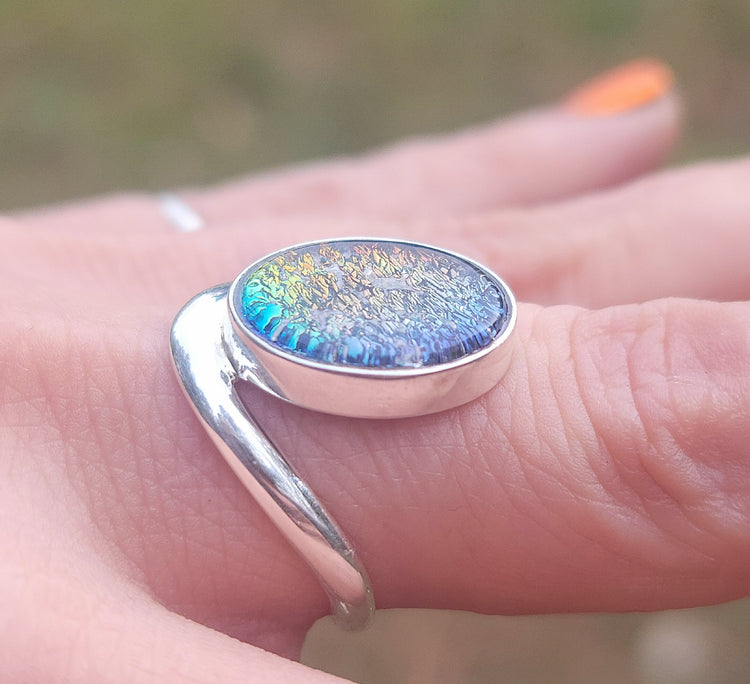 - Materials: Dichroic Ash Infused Glass & Sterling Silver