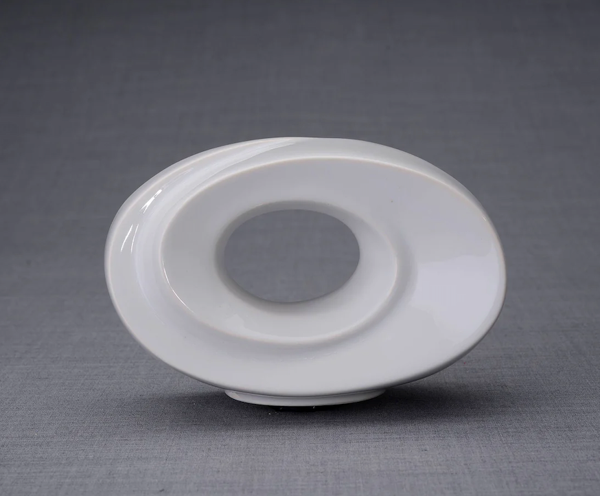The Ivory Eternal Artistic Ceramic Urn is crafted from white ceramic, symbolizing compassion, purity, and tranquility. The serene white color creates a peaceful ambiance, offering solace and comfort during the remembrance of your loved one. The soft light reflecting on the urn's surface adds to the ethereal nature of the memorial.
