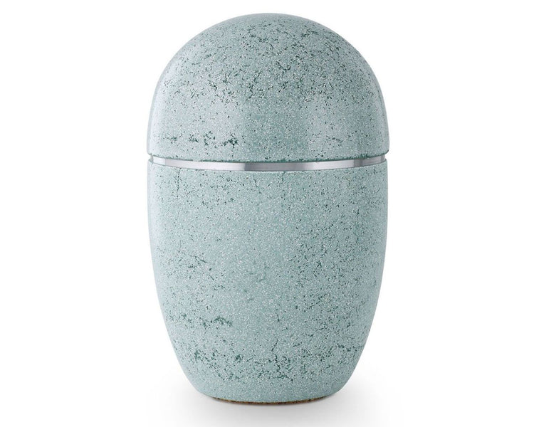 The Atlantis Sky Blue Ceramic Urn presents a graceful and refined tribute to your loved one. Meticulously crafted from cast ceramic, it boasts a captivating polished rock coating that adds a touch of sophistication. The delicate silver-toned band encircling the urn serves as a subtle symbol of eternal connection. With its practical top-opening design, the urn offers ease and convenience in placing the cherished remains.