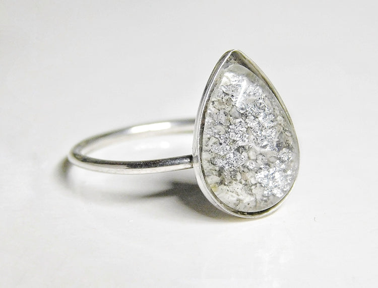 The Teardrop Sterling Silver Cremation Ring symbolizes the profound love and sadness for the loss of someone special.