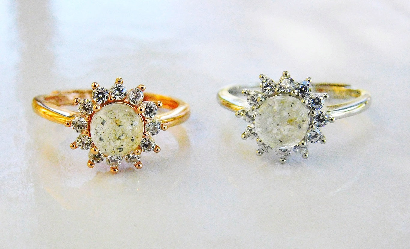 - Ring Stone Material: Glass infused with ashes & other add ons of choice