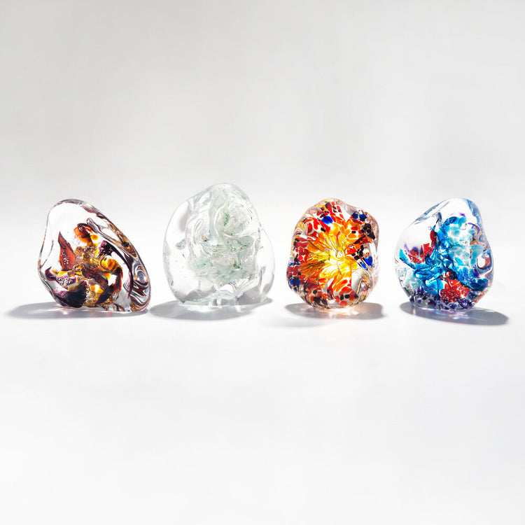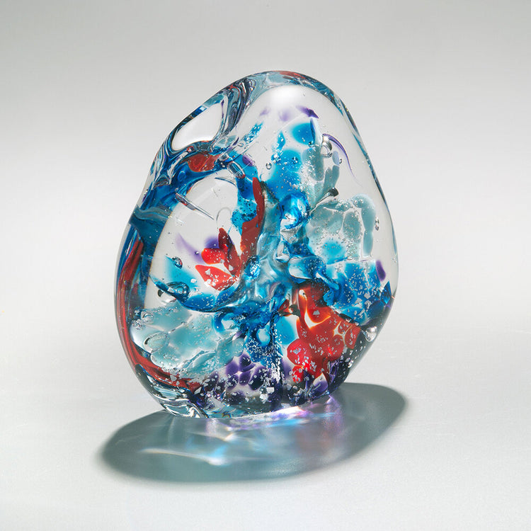 This beautiful one of a kind remembrance ornament represents the fire element to celebrate the life of a lost pet or loved one. Every piece in the collection symbolizes a season, element, and direction, representing the unique characteristics of a departed person or pet. A small amount of ash is infused in the design to continue their legacy.