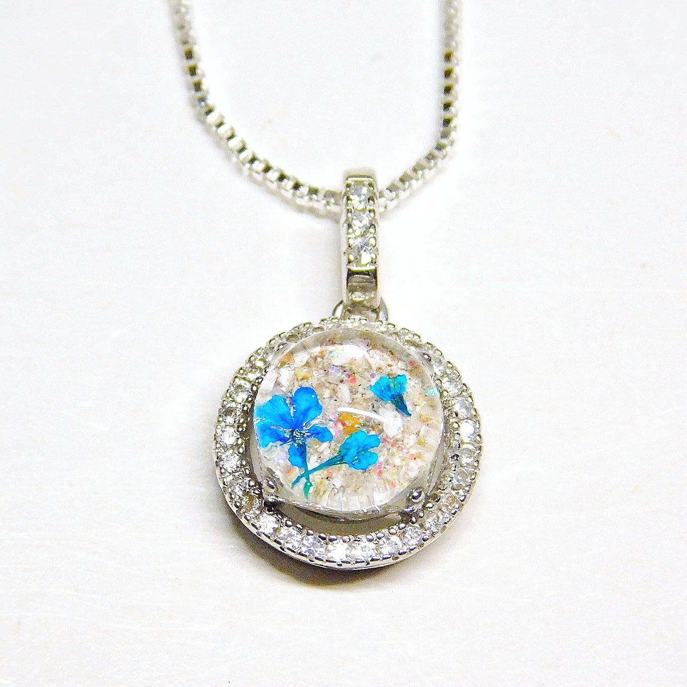 Crafted in sterling silver, this pendant is a beautiful tribute to their life. The silver material represents purity and clarity, while the infused ashes and colorful add-ons symbolize the vibrant memories and spiritual energy of your beloved. Finally, the halo design adds a touch of brilliance, symbolizing the everlasting connection you share.