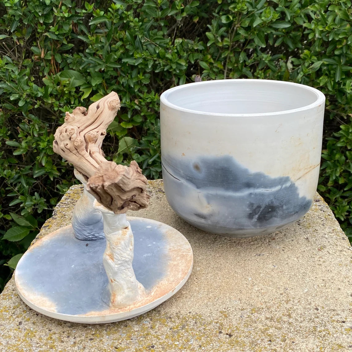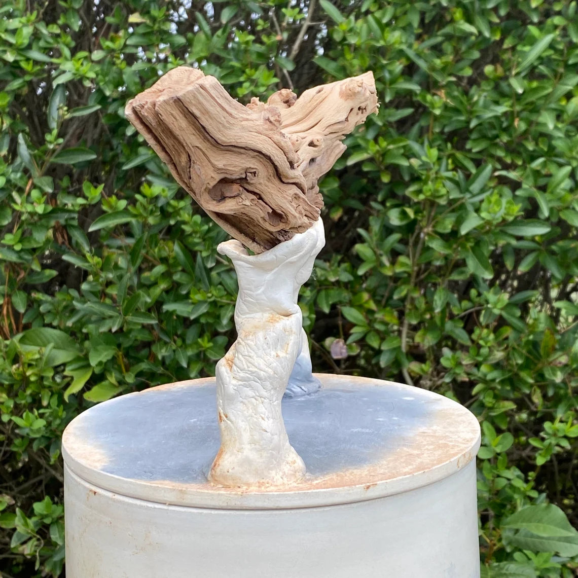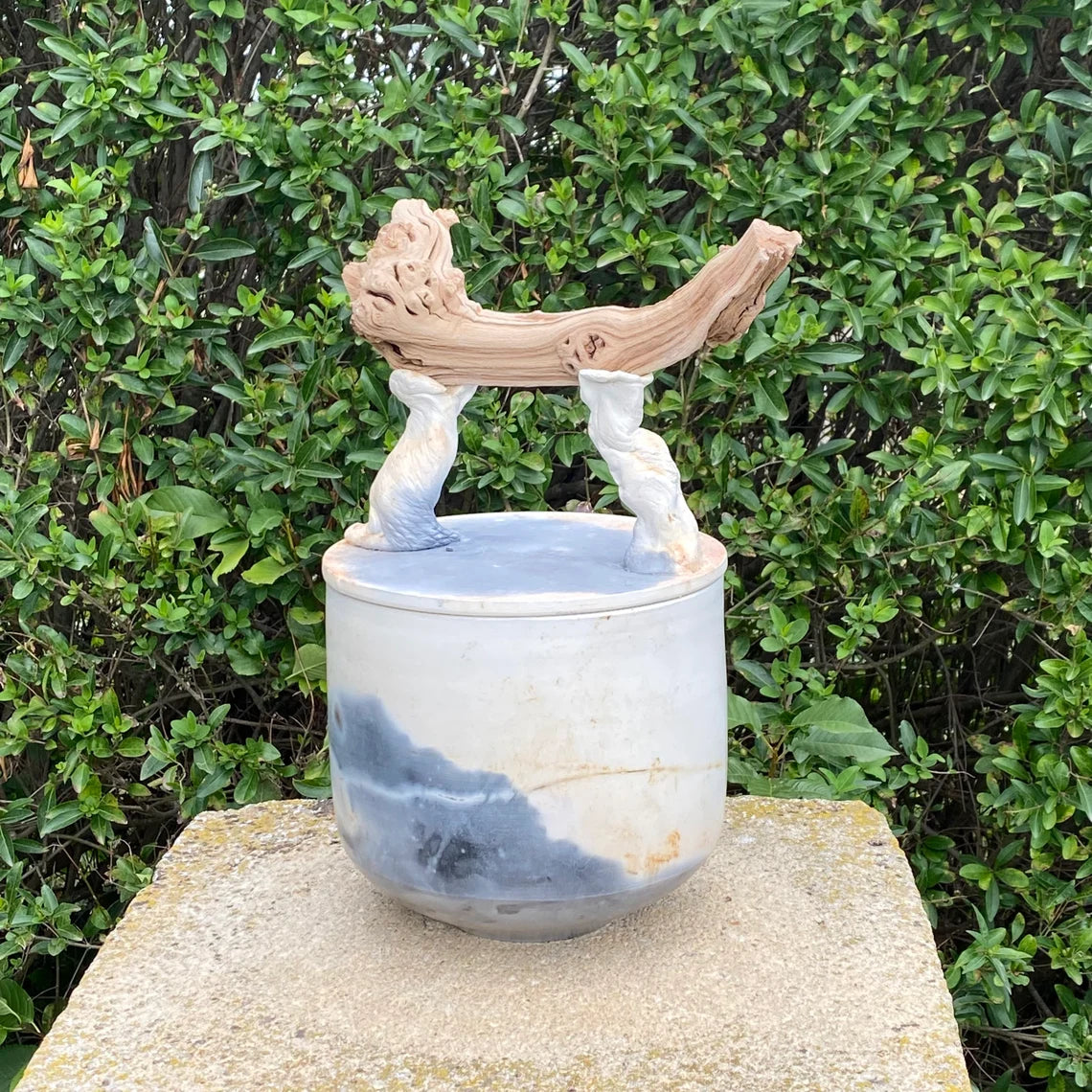 The driftwood sculpture urn is a truly exceptional keepsake for commemorating the memory of a departed friend or family member. No glazing is used during the handmade process. The bare clay urn features a ferric chloride coating which is quite unusual and exclusive. The wax polish coating protects the urn from dust and adds durability. No two urns are alike and organic materials like wire, rope, minerals and other raw materials are used during the manufacturing phase to create unique patterns and effects. The urn measures 25cm x 20cm and is the perfect keepsake for someone that had a love for nature and the ocean.