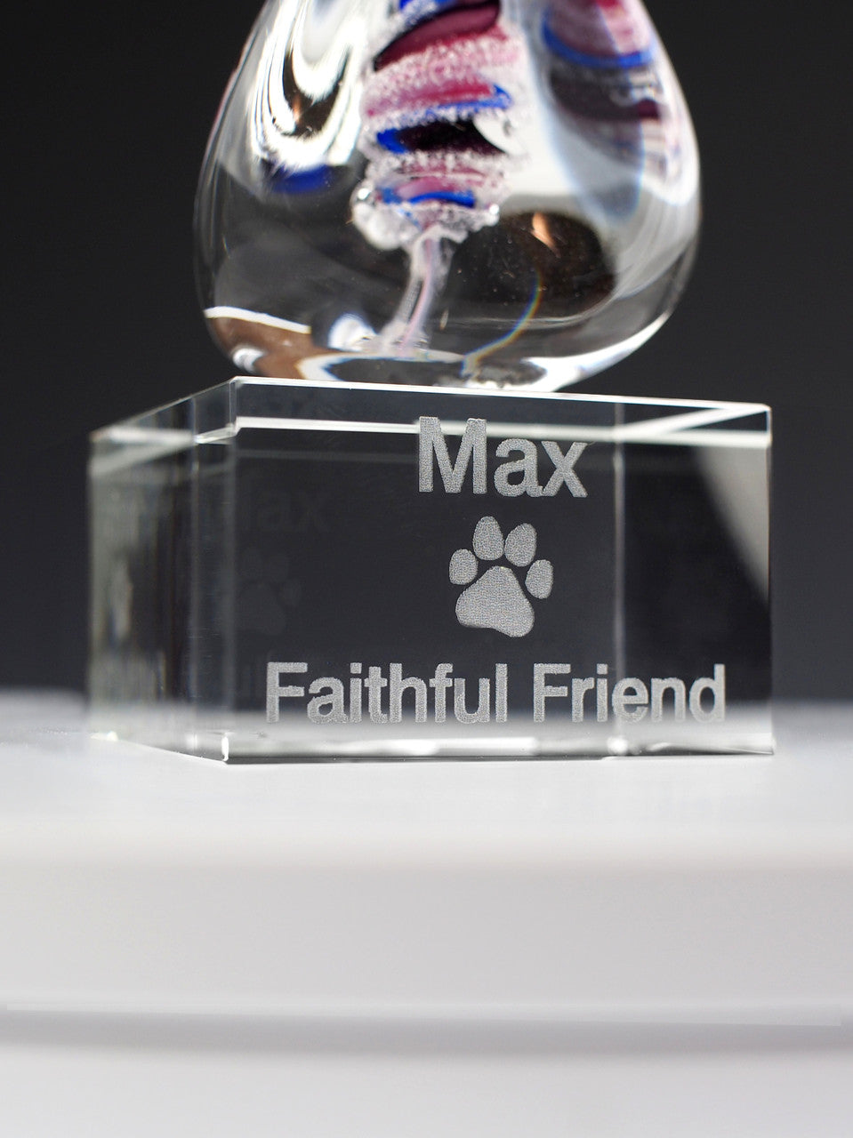 Available in two sizes, it requires only a 1/4 teaspoon of ash. Optional engraved bases and handwritten inscriptions offer a personalized touch.