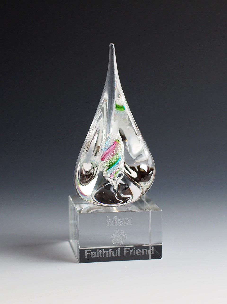 The Infinity Multi Color Memorial Paperweight is a colorful twist on our geometric design, encapsulating your loved one's ashes in a swirl of vibrant hues within a pyramid shape.