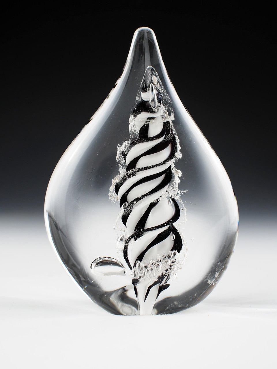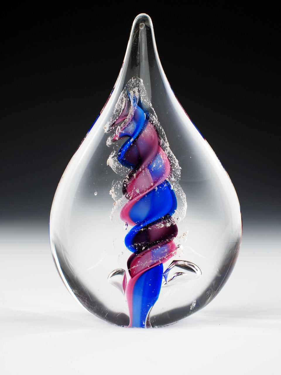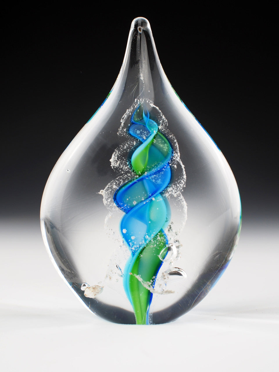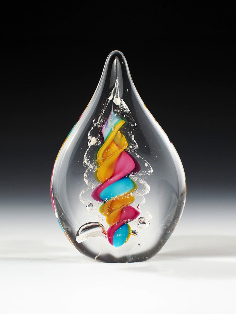 Crafted from molten clear and colored glass, it's a permanent tribute that fits any setting. Optional engraved bases and handwritten inscriptions are available for added personalization.