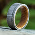 As an added touch of distinction, the sleeve of this handmade ring is crafted from oak wood sourced from an authentic whiskey barrel.