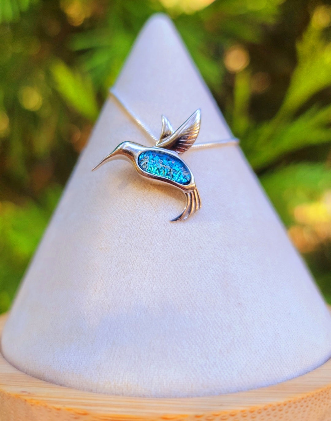 This Hummingbird Cremation Necklace is a sentimental piece of handcrafted cremation jewelry.