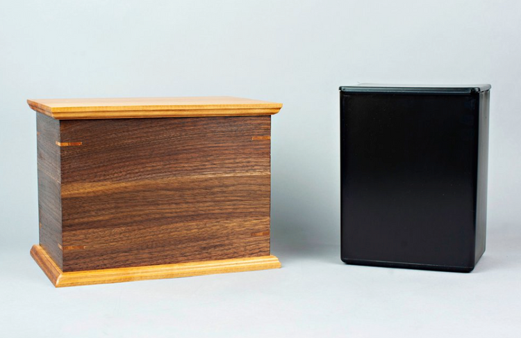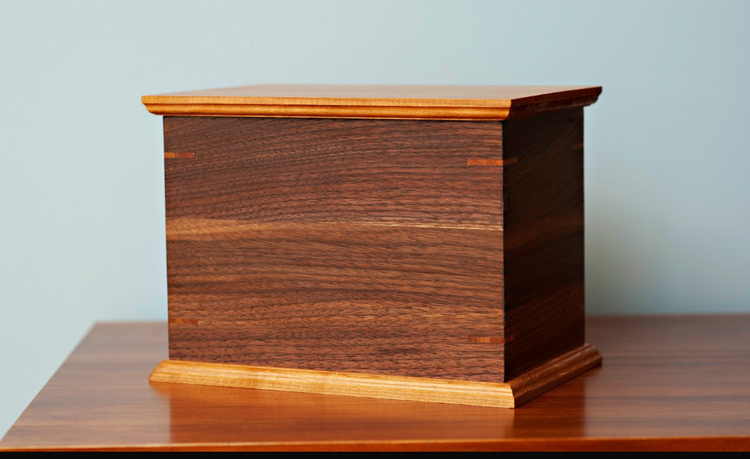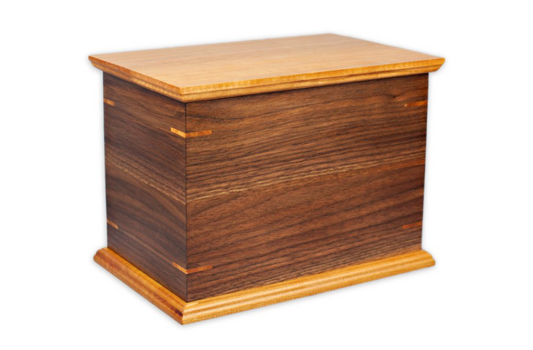 The Meredith Wooden Urn Box is handcrafted by skilled artisans, using the wood from beautiful cherry and walnut trees.