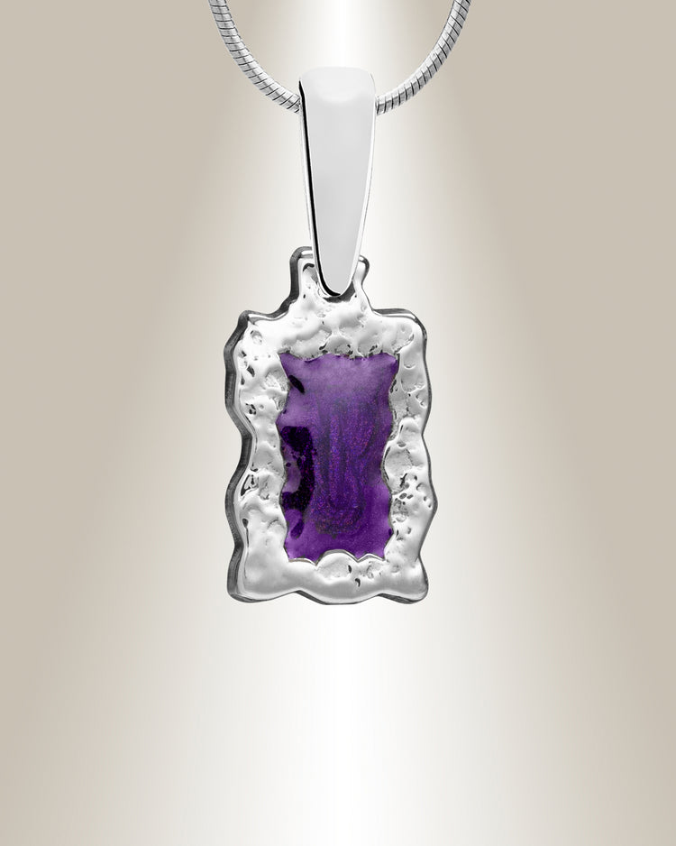 If you’re looking for something unique to honor the memory of someone you’ve lost, then this pendant is just what you need. The pendant is crafted with 925. Sterling silver and features a bright purple center piece. A tiny bit of ash is blended with the resin center to give you a personal keepsake to treasure. The scalloped and hammered appearance of the frame makes this jewelry piece a standout option.