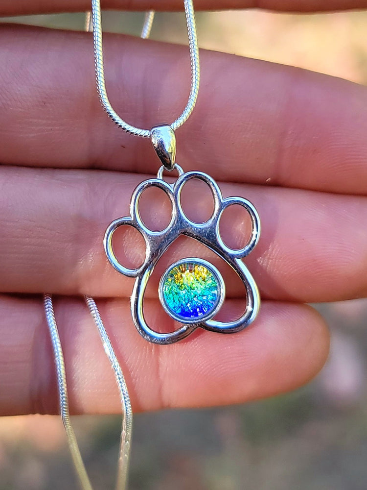 The Buddy Paw Print Glass Pendant is a memorial perfect honor the life of your furry friend.