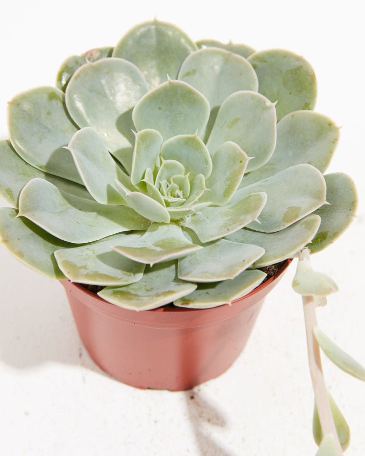 The Echeveria Rose Succulent's rosette shape symbolizes unity, continuity, and the cycle of life, echoing the natural world's inherent beauty and resilience. Its ability to thrive with minimal care reflects the strength and adaptability of life, encouraging a sense of calm and simplicity in our busy lives. This plant serves as a reminder of the enduring beauty of nature and the effortless grace with which it navigates the world, offering a serene and beautiful presence in any space.