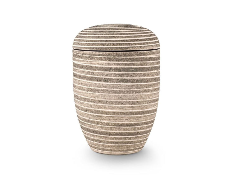 The Epping River Rock Eco Burial Urn offers a unique and captivating tribute to honor your loved one's memory. Its grooved outer surface, with a spiral pattern, is crafted from limestone, creating an urn that stands out with its natural beauty. Designed to be biodegradable, this urn seamlessly returns to the earth, symbolizing the circle of life. With a capacity of 305 cubic inches, it provides ample space to preserve cherished memories.