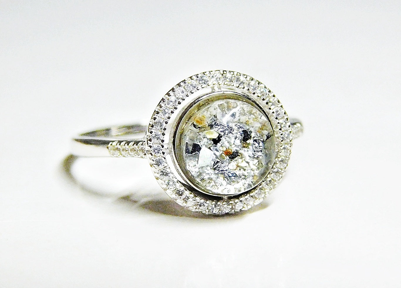 - Ring Stone Material: Glass infused with ashes & other add ons of choice