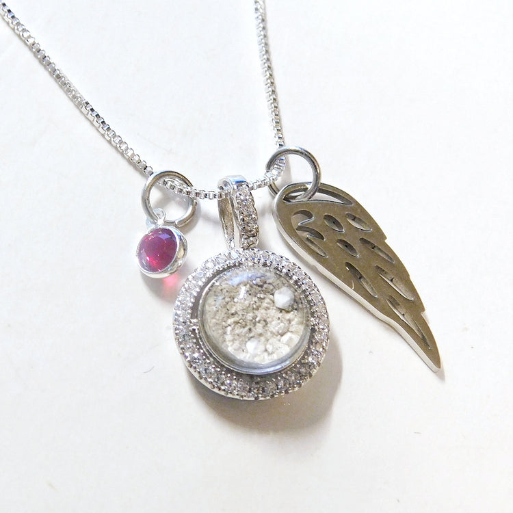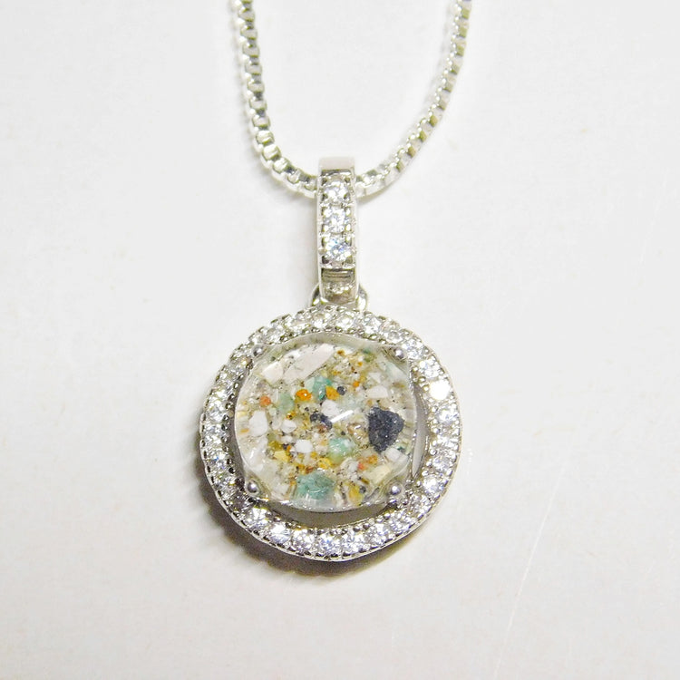 Crafted in sterling silver, this pendant is a beautiful tribute to their life. The silver material represents purity and clarity, while the infused ashes and colorful add-ons symbolize the vibrant memories and spiritual energy of your beloved. Finally, the halo design adds a touch of brilliance, symbolizing the everlasting connection you share.