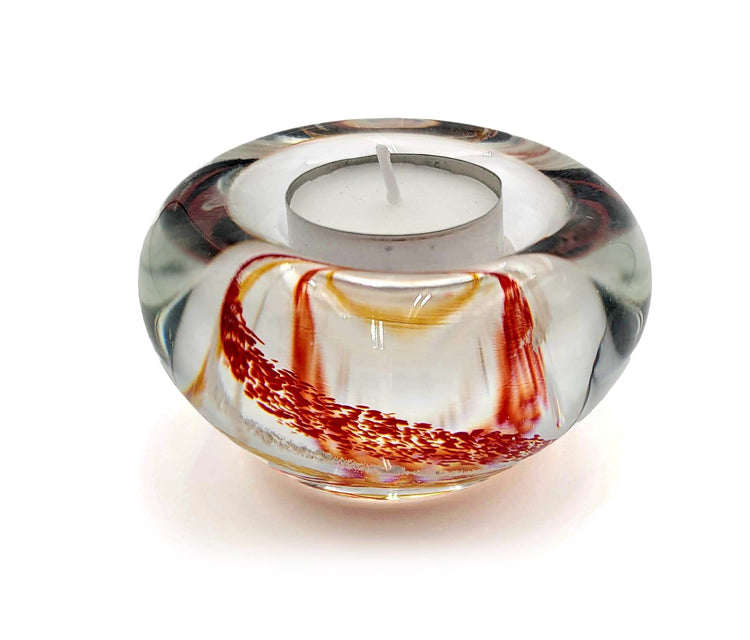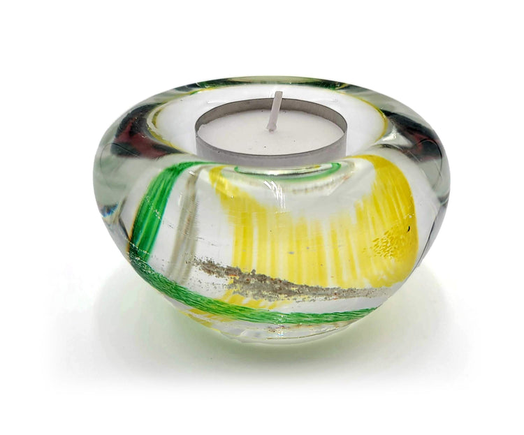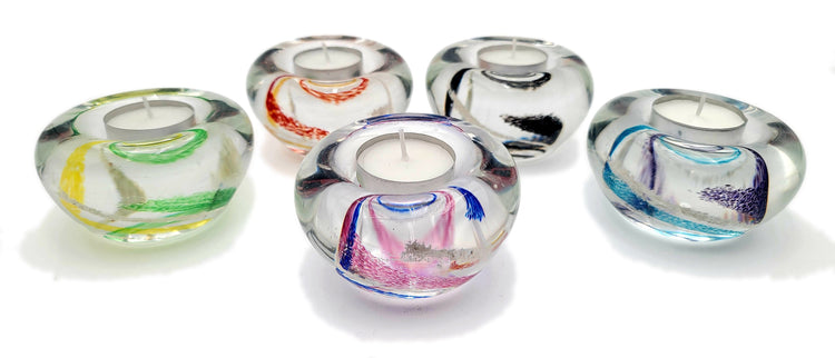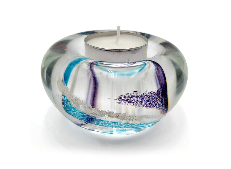 This Votive Candle Holder is an artistic and special piece of memorial art. Each holder is infused with a small amount of ashes, making it a deeply personal and sacred space to honor your loved one.