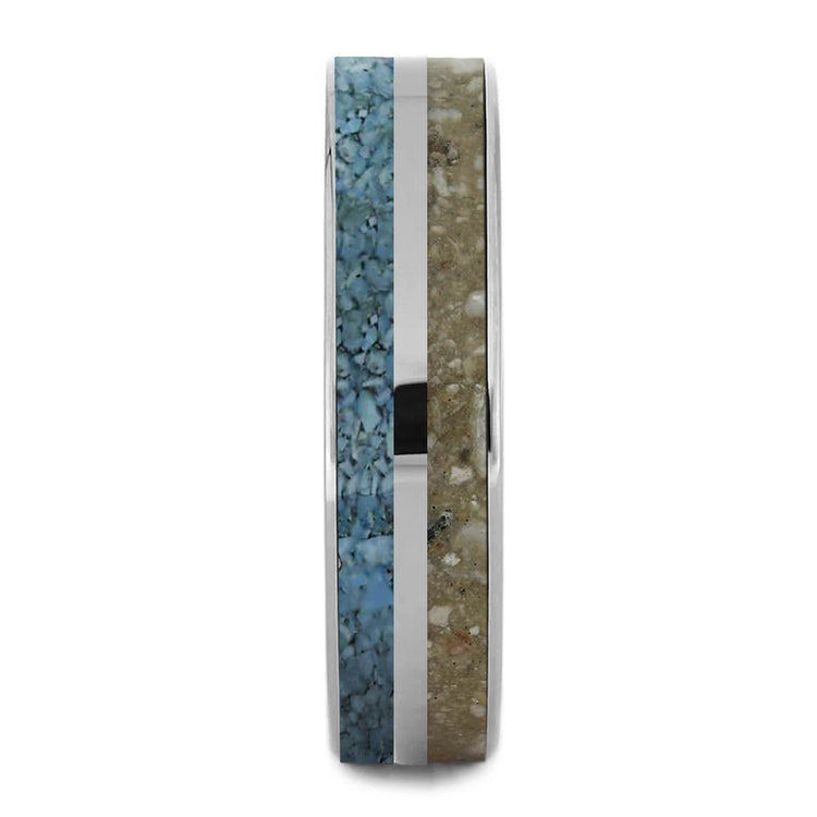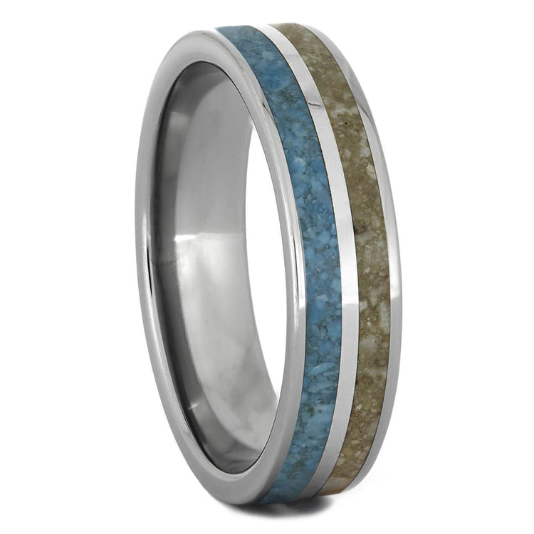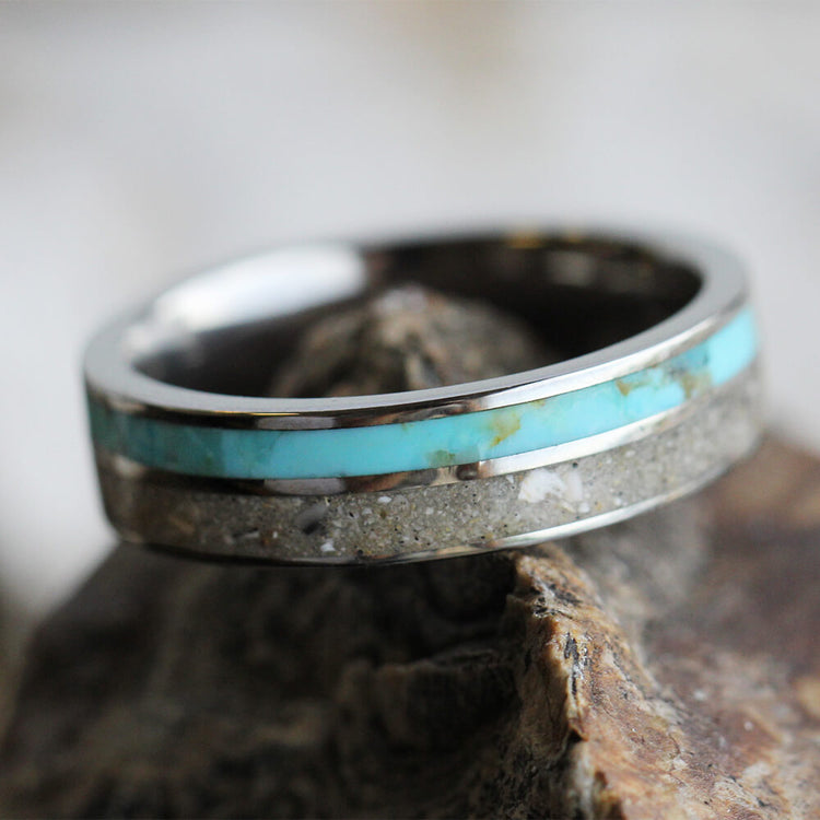 The vibrant blue turquoise pattern brings a sense of serenity and tranquility, while the customizable inlay allows you to personalize the ring with a material that holds special significance.
