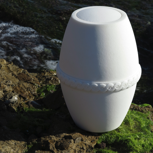 The Oceanus eco-friendly urn is perfect for a water burial with its soluble salt composition and appealing white exterior.