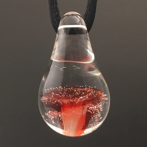The Scarlett Teardrop Ashes Necklace encapsulates your loved one's ashes in a swirl of color, all within a clear glass teardrop.