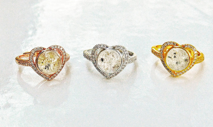 - Ring Stone Material: Glass infused with ashes & other add-ons of choice