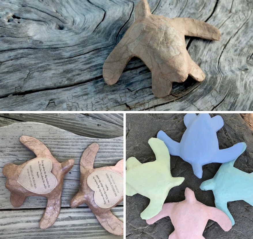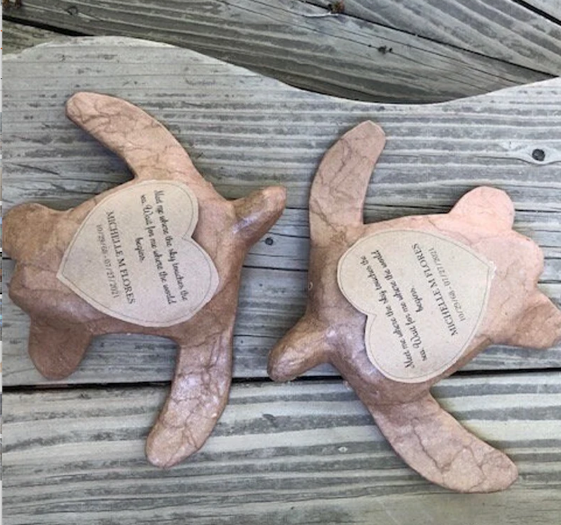 This keepsake sized water turtle urn offers a unique way for dispersing the ashes of your loved one in the ocean or a large body of water. Each item is specially crafted by hand, using biodegradable materials that naturally breaks down over time.