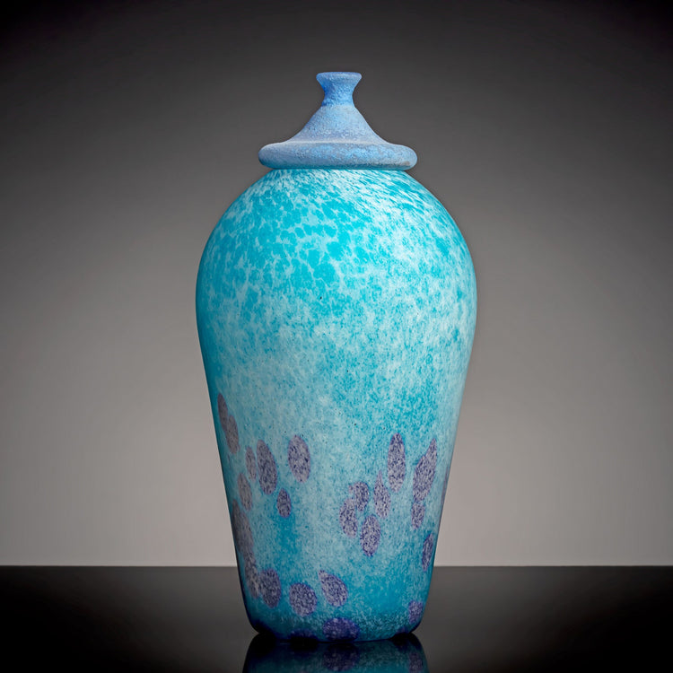 Coral Blue Blown Glass Urn