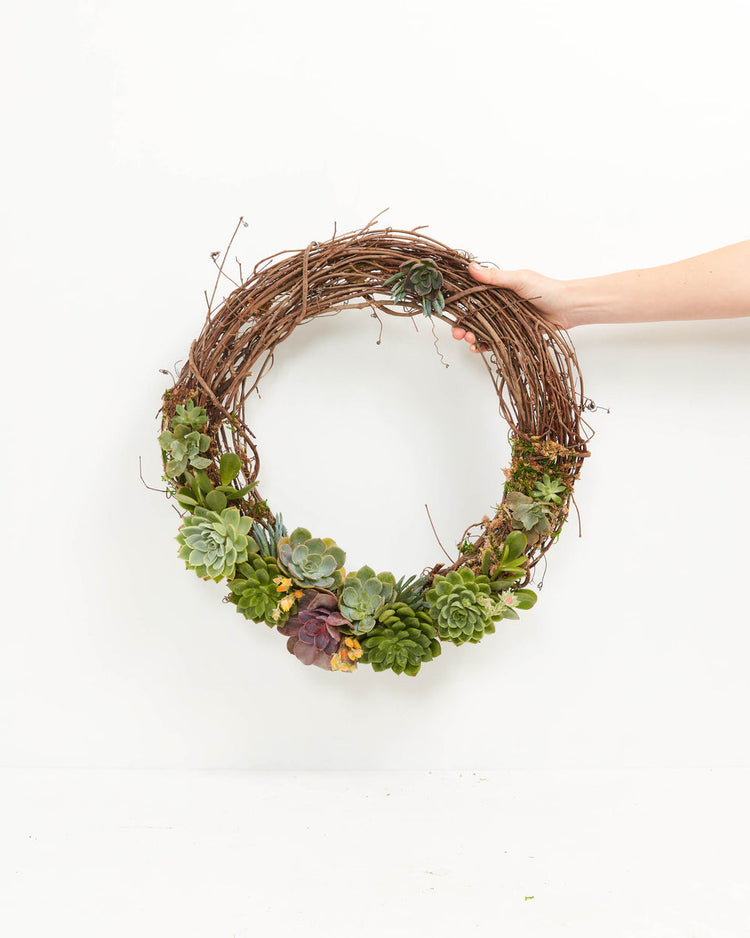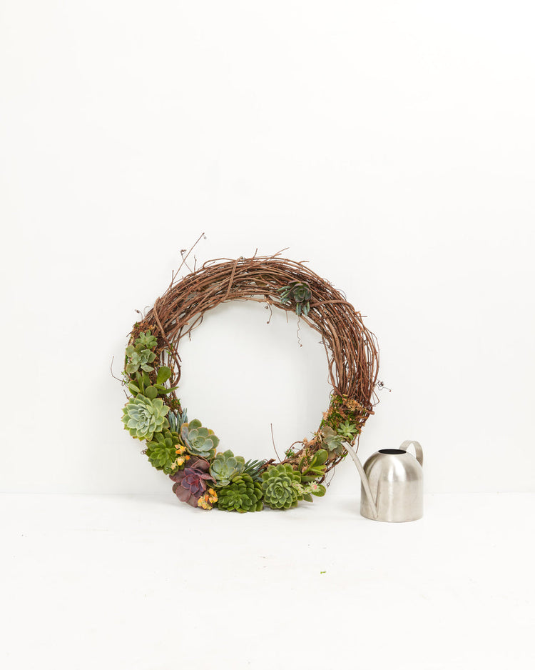 To maintain your succulent wreath's beauty, place it in a location with plenty of bright, indirect sunlight. Avoid the harsh direct rays of the noon sun during summer months. Water thoroughly once a week or when the moss base feels very dry to the touch. With these simple care steps, your wreath will continue to flourish and may even surprise you with colorful, long-lasting blooms.