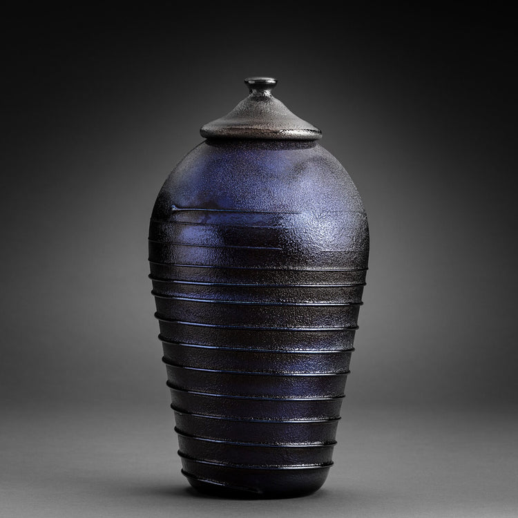 Indigo Metallic Blue Blown Glass Urn