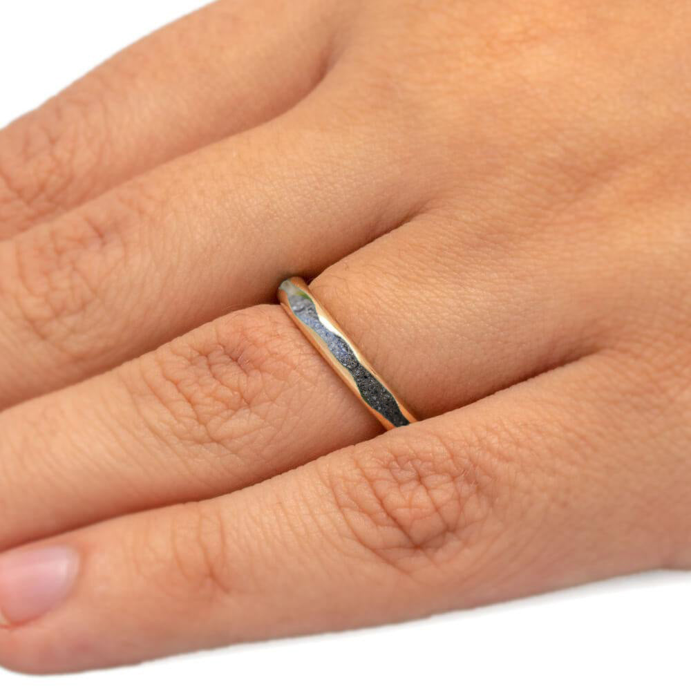 Immerse yourself in the graceful embrace of the Amara Wavy Solid Gold Cremation Ring, an exquisite symbol of eternal connection and remembrance.