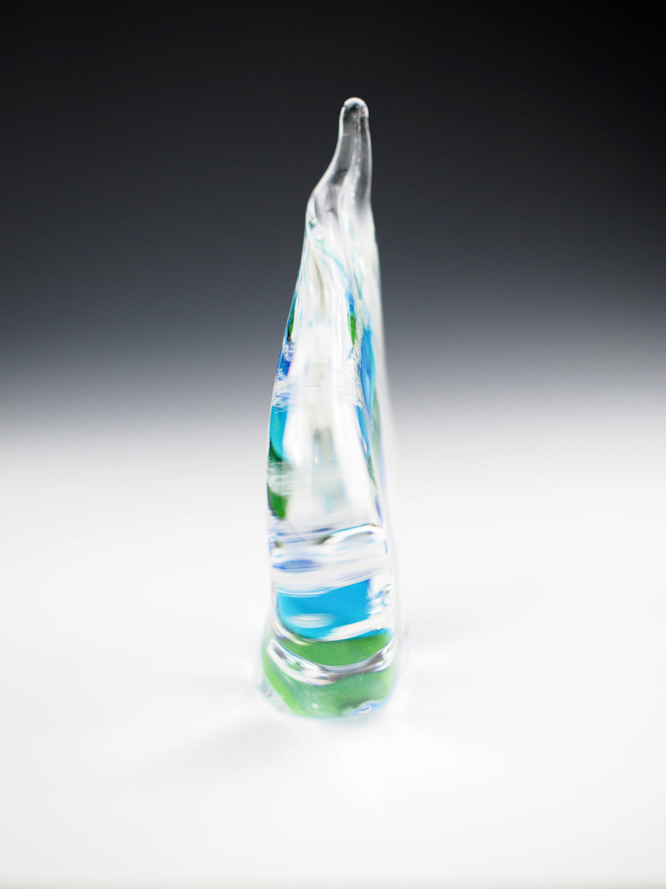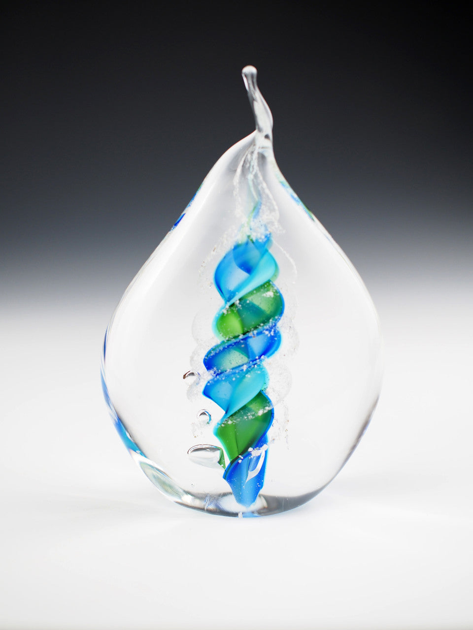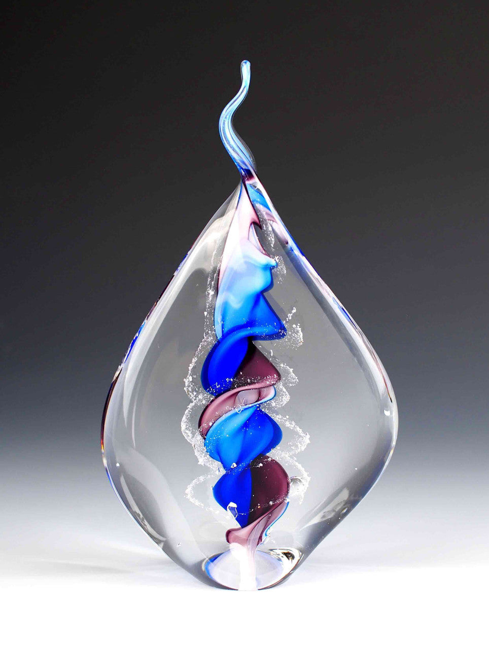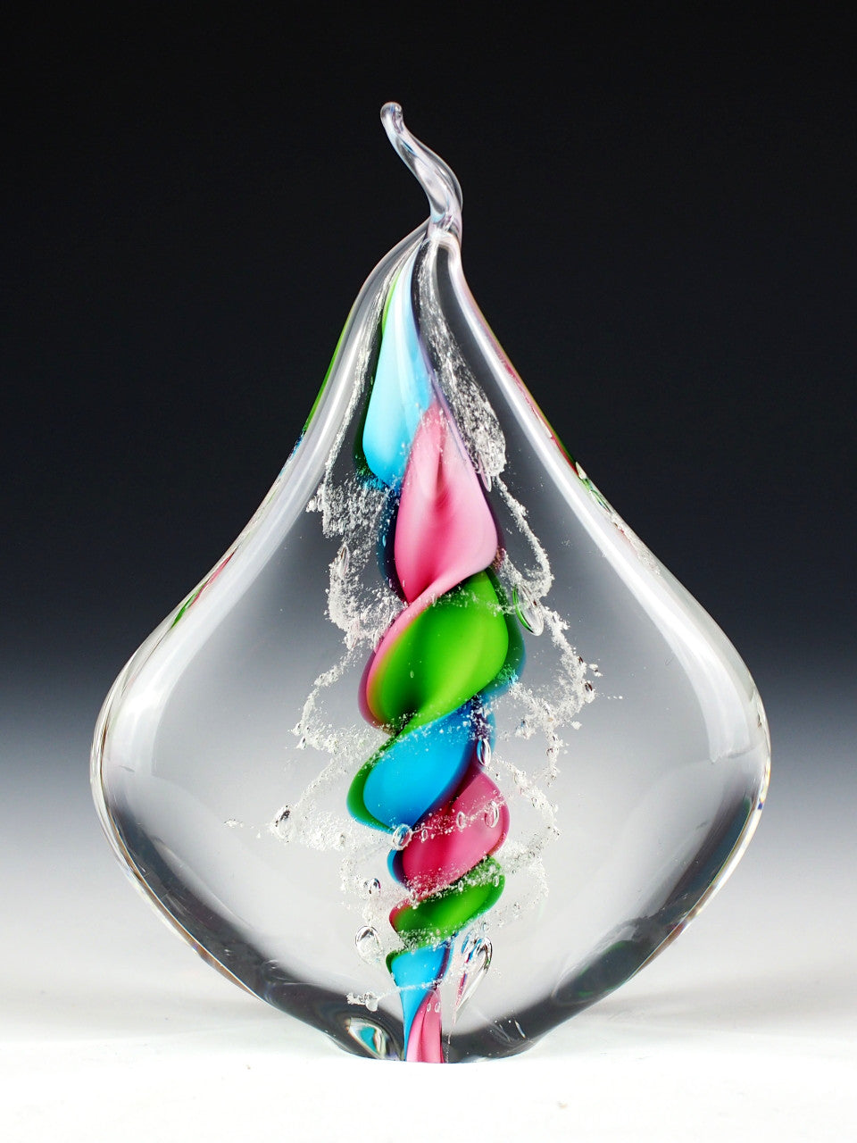 The Eternal Multicolor Flame offers a vibrant twist on our classic design, featuring a colorful core around which your loved one's ashes spiral. Made from both clear and colored molten glass, this memorial is a lasting and beautiful tribute.