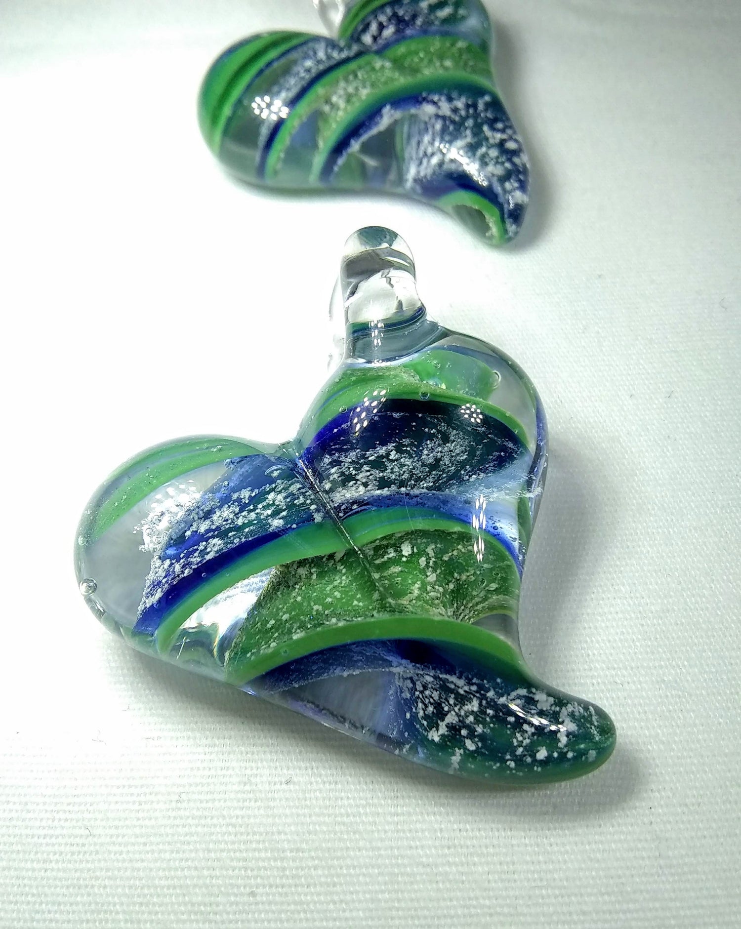 This stunning glass pendant can be customized to whatever color combination you wish. Every encasement is very clean with little to no air trapped in the glass, providing a seamless optical clarity and sound structural integrity.