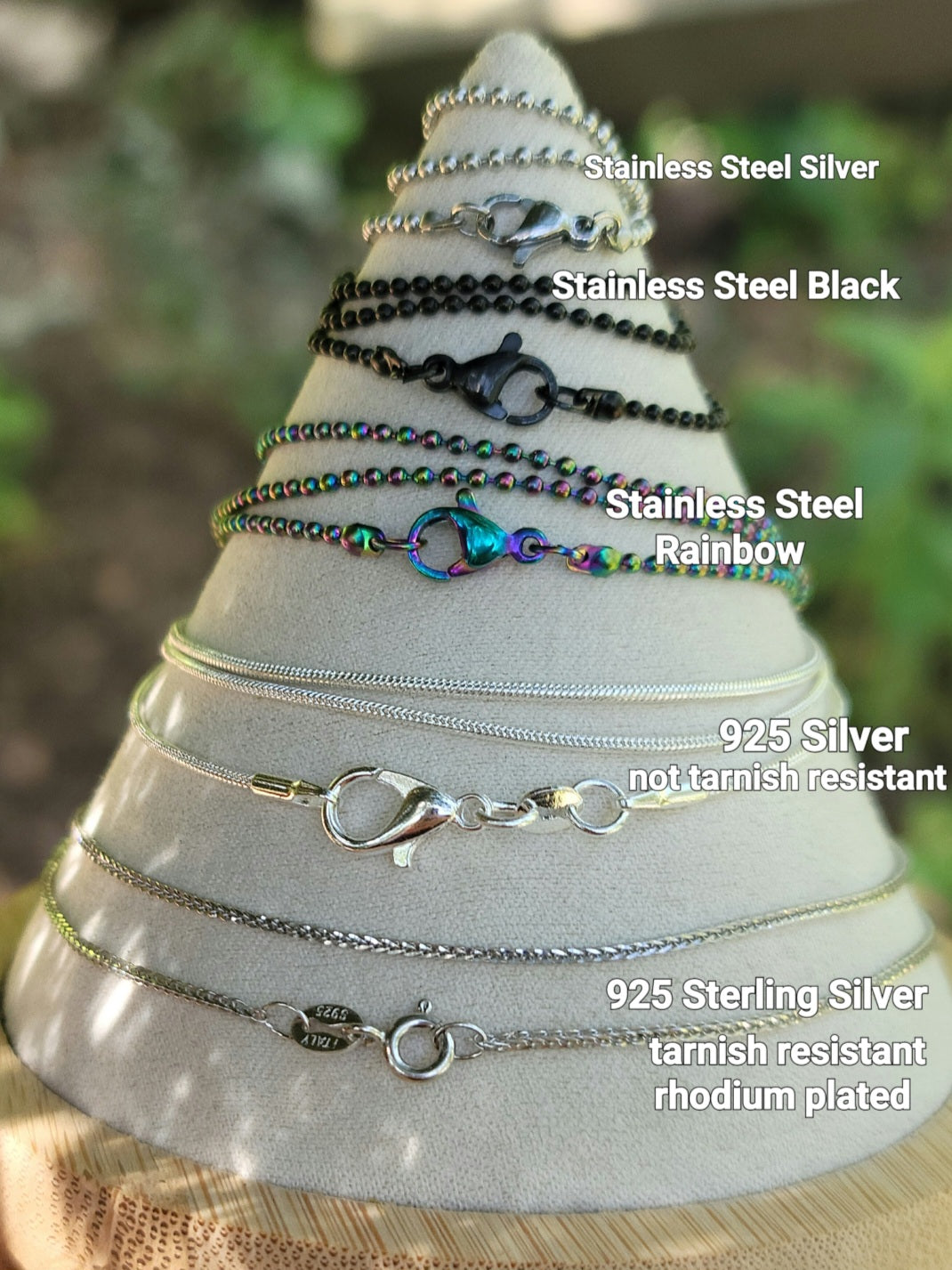The pendant's bottom has a lovely blue stone that exudes tranquility and peace. It also is infused with your loved one's ashes, making it a one of kind momento.