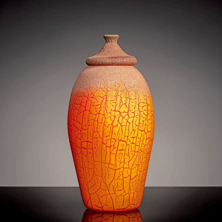 The Lava Glow Blown Glass Urn is a vibrant and meaningful tribute to loved ones, reflecting the fiery beauty of nature and the artistry of glassmaking.