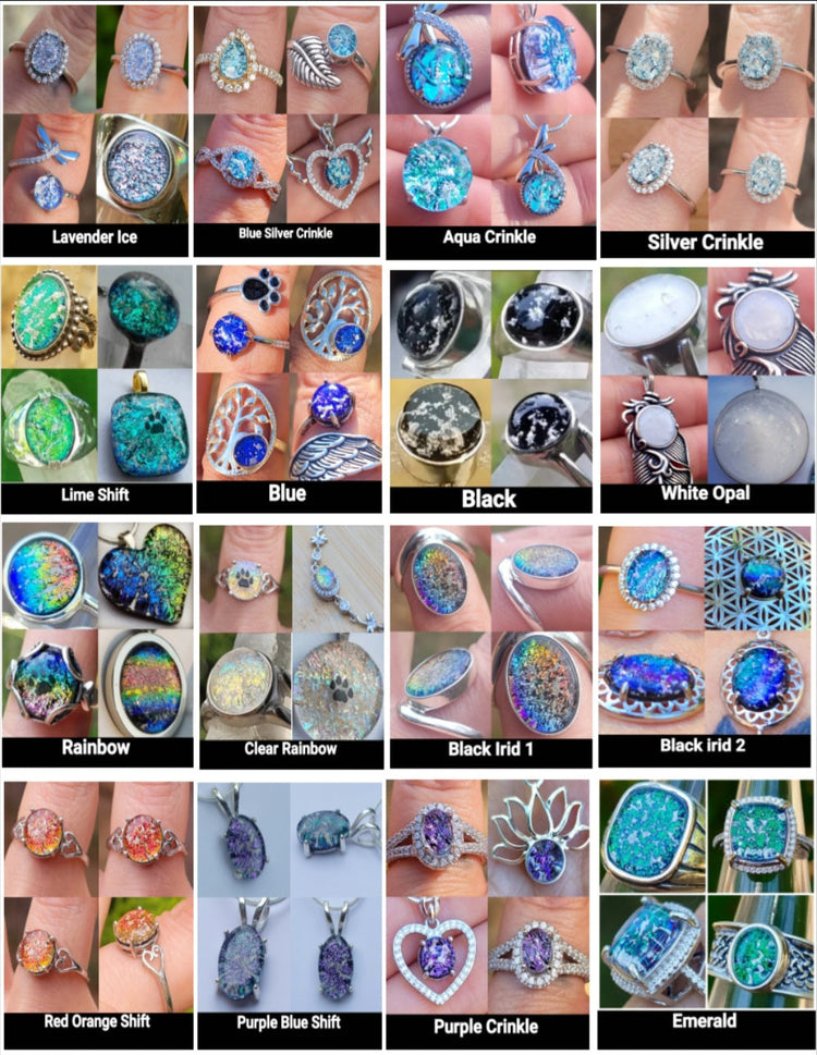 - Materials: Ashes infused glass, dichroic glass, cremation ashes, glass, sterling silver