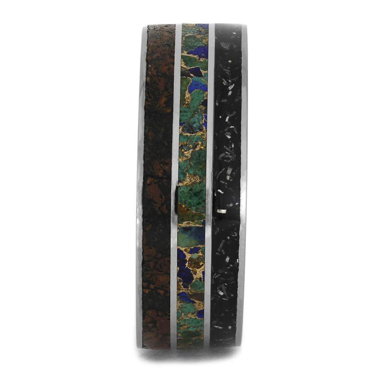 The black stardust inside the ring represents the cosmic tapestry that weaves together the stories and energies of the universe.